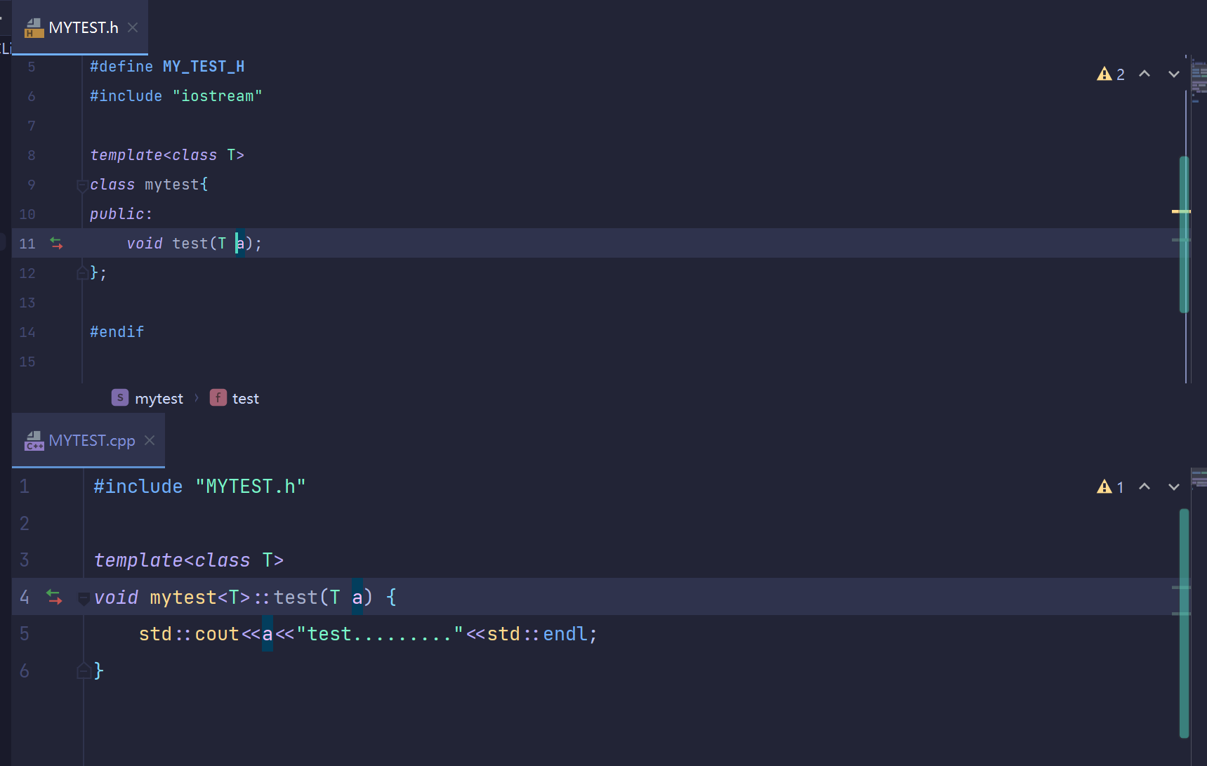 undefined reference to `mytest<int>::test(int)'collect2.exe: error: ld returned 1 exit status具体如下: