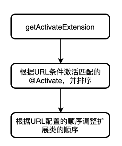 @Activate配置的before、after、order等参数进行排序 - 遍历所有自定义的扩展类名称,更具用户URL配置的顺序,调整扩展点激活顺序。