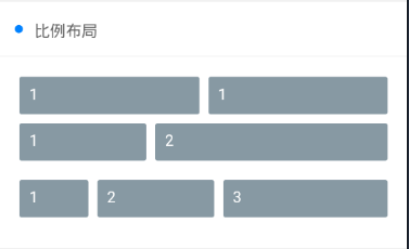 例如: 1:1 <view class="flex"> <view class="flex-sub bg-grey padding-sm margin-xs radius">1</view> <view class="flex-sub bg-grey padding-sm margin-xs radius">1</view> </view> 1:2 <view class="flex p-xs margin-bottom-sm mb-sm"> <view class="flex-sub bg-grey padding-sm margin-xs radius">1</view> <view class="flex-twice bg-grey padding-sm margin-xs radius">2</view> </view> 1:2:3 <view class="flex p-xs margin-bottom-sm mb-sm"> <view class="flex-sub bg-grey padding-sm margin-xs radius">1</view> <view class="flex-twice bg-grey padding-sm margin-xs radius">2</view> <view class="flex-treble bg-grey padding-sm margin-xs radius">3</view> </view>