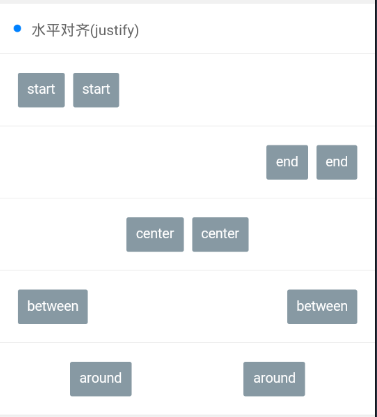 (3)水平对齐(父容器的class中加入justify-start|end|center|between|around)