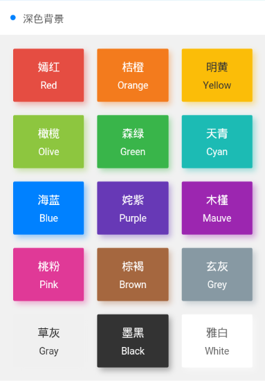 (2)文字颜色(在class中加入 text-red|orange|...)颜色参考7.背景