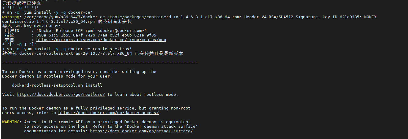 安装完这个脚本还需要安装一个uidmap包,会导致docker容器里面的用户和主机的用户uid不一致,在LNMP环境中有问题。