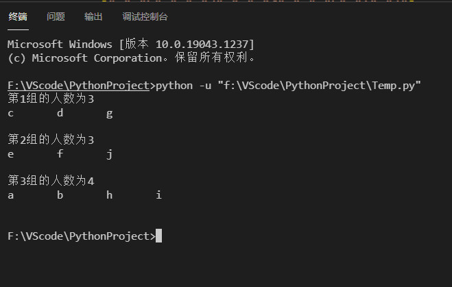 print("第%d组的人数为%d"%(i,len(group)))
