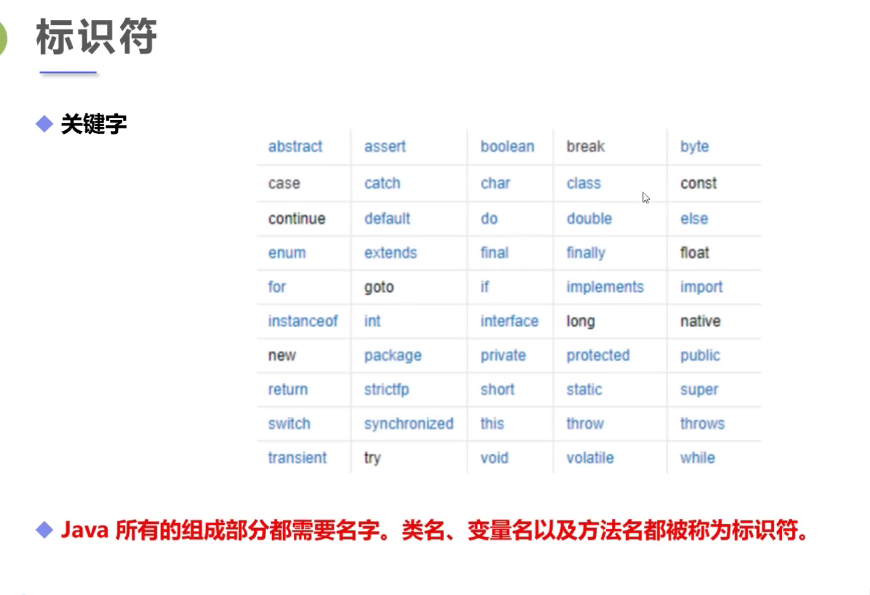类名、变量名、方法名 都是标识符