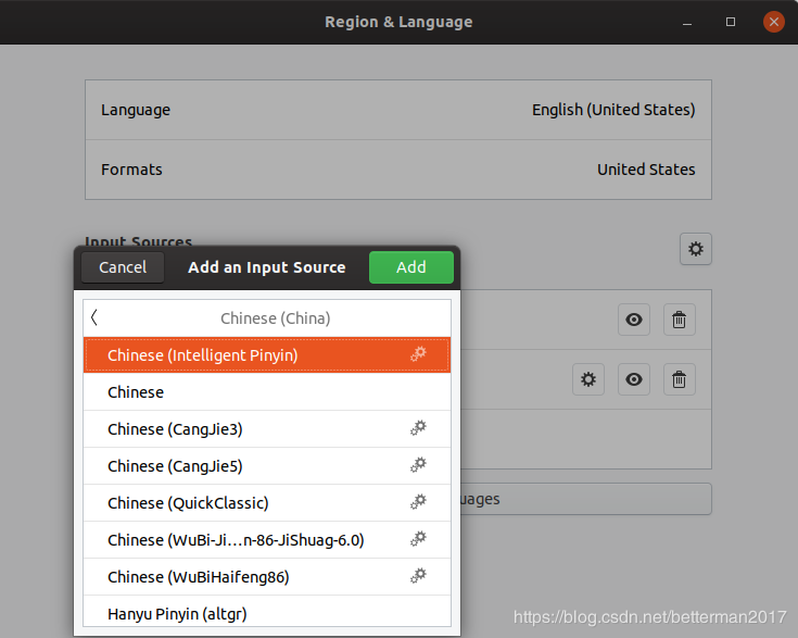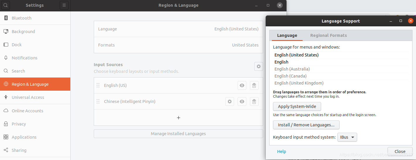 在Ubuntu19.10中设置系统语言为英语、输入语言为中文,简易安装中文输入法