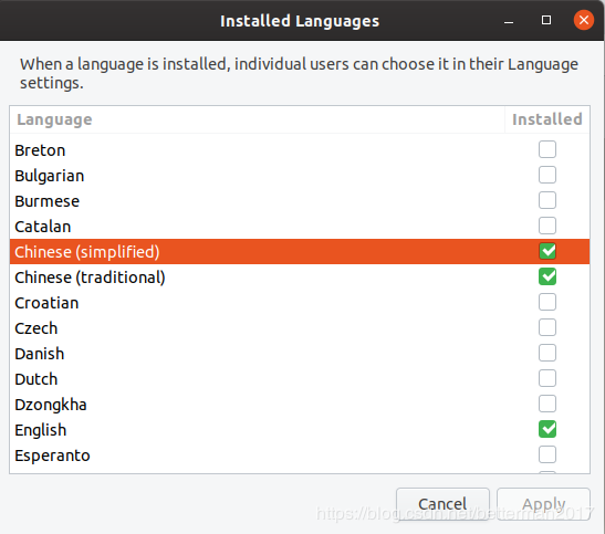 首先需要给Ubuntu19.10安装Chinese语言包支持。