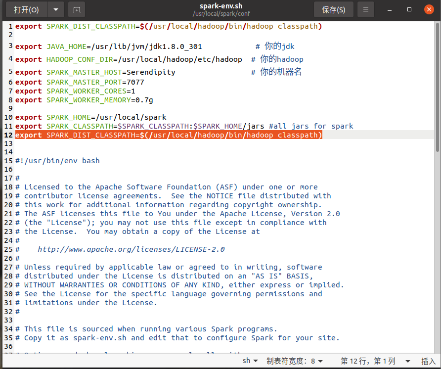 vim /usr/local/spark/conf/spark-env.sh