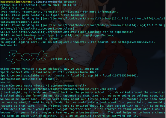 3.通过并行集合(列表)创建RDD 输入列表、字符串、生成数组