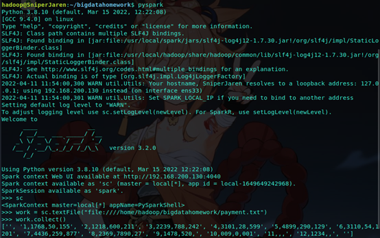 网盘下载payment.txt文件,通过RDD操作实现选出最大支付额的用户。