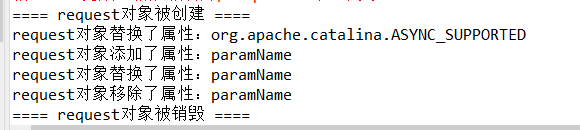 public class ProcessListener implements ServletContextListener, ServletRequestListener { public ProcessListener() { System.out.println("==== 过程监听器已开启 ===="); } public void requestInitialized(ServletRequestEvent sre) { System.out.println("==== request对象被创建 ===="); } public void requestDestroyed(ServletRequestEvent sre) { System.out.println("==== request对象被销毁 ===="); } public void contextDestroyed(ServletContextEvent sce) { System.out.println("==== context对象被销毁 ===="); } public void contextInitialized(ServletContextEvent sce) { System.out.println("==== context对象被创建 ===="); } } -