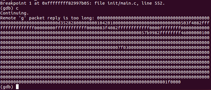 接下来使用gdb进行跟踪调试,这里,我遇到了一个问题,在断点之后continue出现reply is too long: