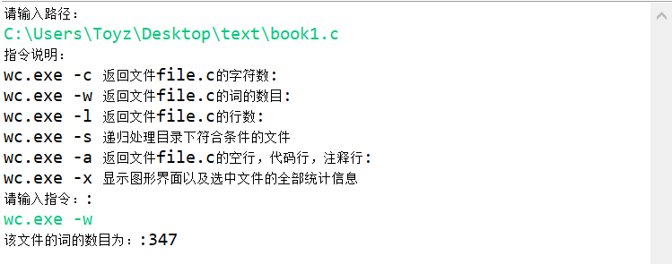 ③对于wc.exe的基本功能,主要设计IO流中的相关类与方法,其中用readLIne()方法所获得的每一个行的字符串形式的不同处理即是处理基本功能的关键。特别的是,对于计算词数的方法,每一个词的通用格式使用正则表达式来进行匹配。