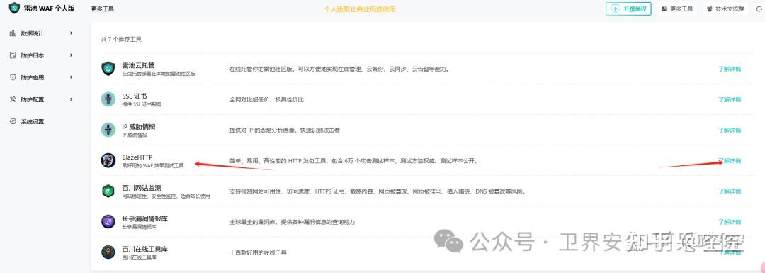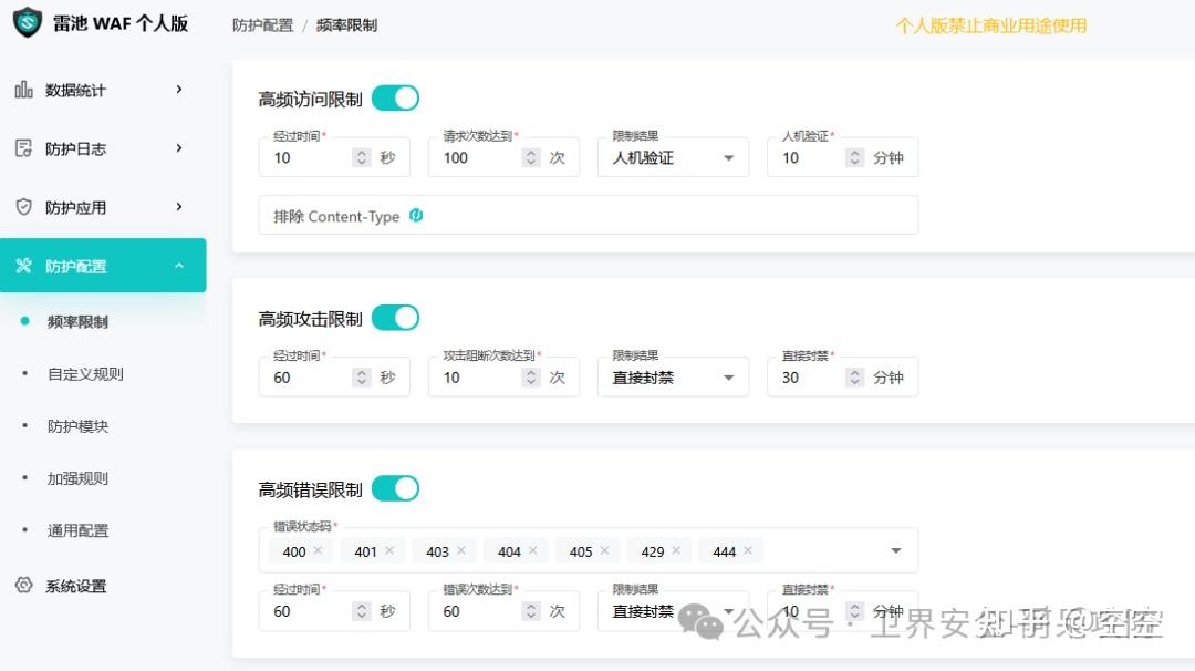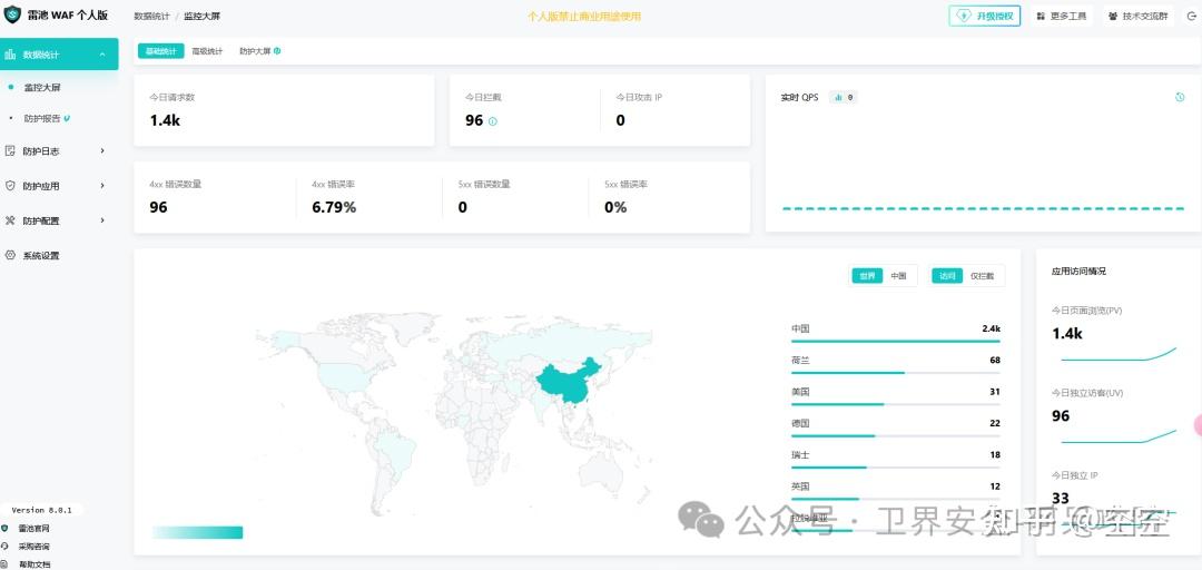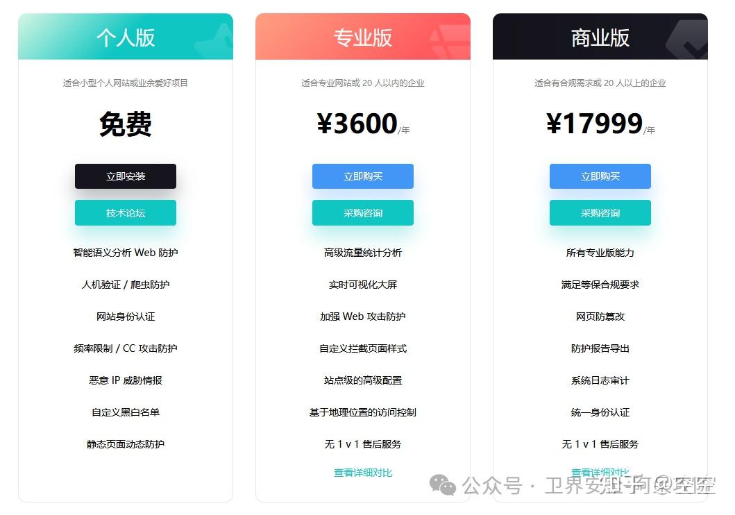 简单使用体验的评价:其他*们花钱才给用的功能,个人版就给你用,不是数据泄露类漏洞,在渗透流程、访问频率、逆向难度上都给你防护得死死的,别的*们的waf真的一比弱爆了,买设备上面部署的也是*软件,不如用自己服务器部署软件,去掉硬件成本,没预算、又怕被等保检查通报、效果又好的waf用个不香吗。