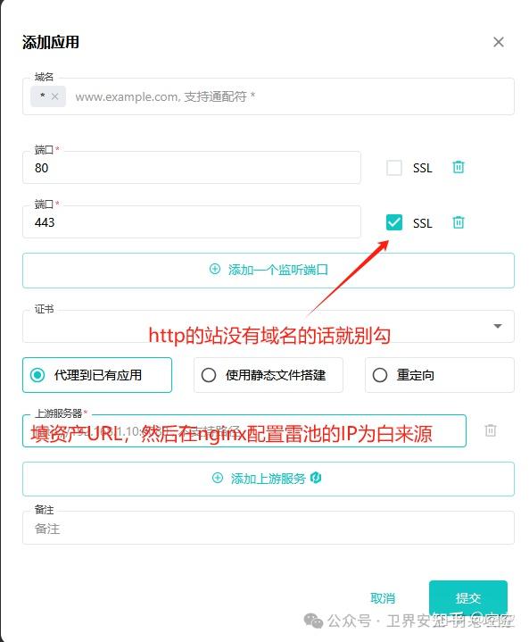 我是没配证书的,配置完毕后访问雷池IP的80端口,雷池相当于一个nginx反向代理,所以直接访问雷池的端口即可。