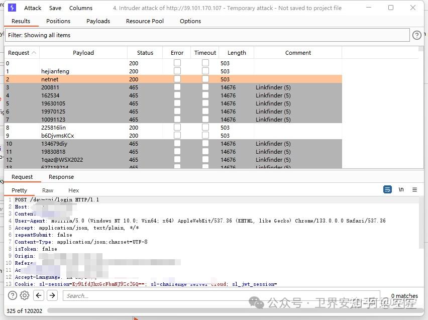 具体来说,用户枚举攻击通过尝试大量用户名来探测系统是否存在特定用户,虽然单个请求看似无害,但大量请求会消耗服务器资源,影响正常用户的访问体验。SQL脱库攻击则试图通过构造恶意SQL语句来获取数据库中的敏感信息,而XSS绕过FUZZ和SSRF探测则分别尝试绕过跨站脚本攻击防护和探测服务器端请求伪造漏洞。