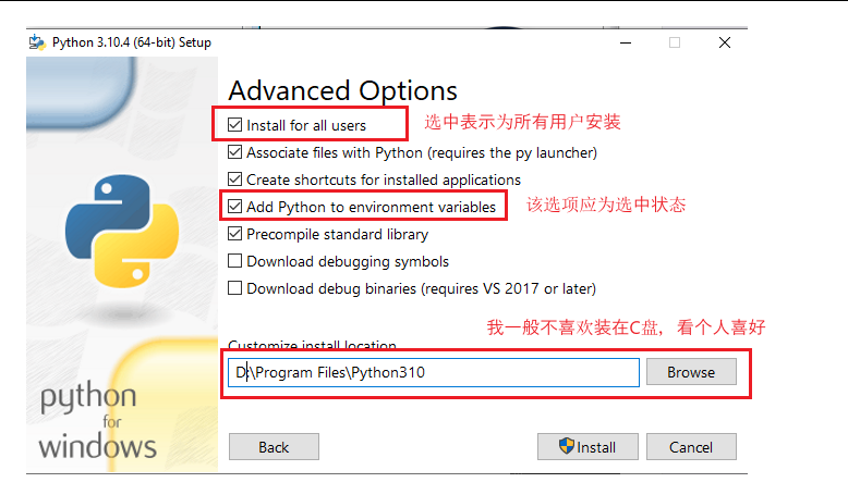 注:如果图2-3中的所有用户安装为选中状态,则环境变量是添加到系统变量中的;如果所有用户安装未选中,环境变量是添加到用户变量中的。