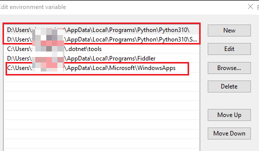 解决方案:确认python的环境变量要在应用商店的环境变量“\WindowsApps”之前。这种情况一般发生在手动添加环境变量,因为安装程序自动添加的环境变量默认都是在第一位的,所以不会出现这个问题。