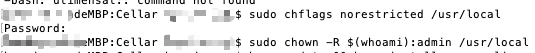 在终端输入sudo chflags norestricted /usr/local(将该文件解除保护) && sudo chown -R $(whoami):admin /usr/local (将该文件夹所有者修改为当前用户)