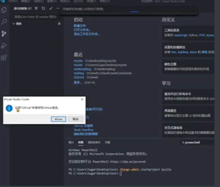 点击左上角的 “勾”->push->add remote->会出现跳转画面,点击allow,打开网页