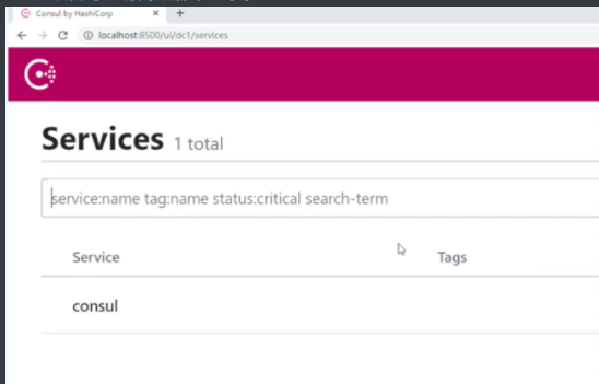 1.3 访问 http://localhost:8500 应该就可以访问注册中心了。如下图所示。