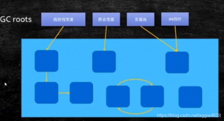 垃圾:没有任何引用指向它的时候就是垃圾。