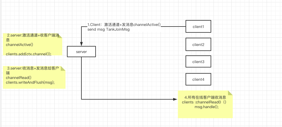 正常连接后,client 会在channelRead0() 里收到一条消息 ClientJoinMsg