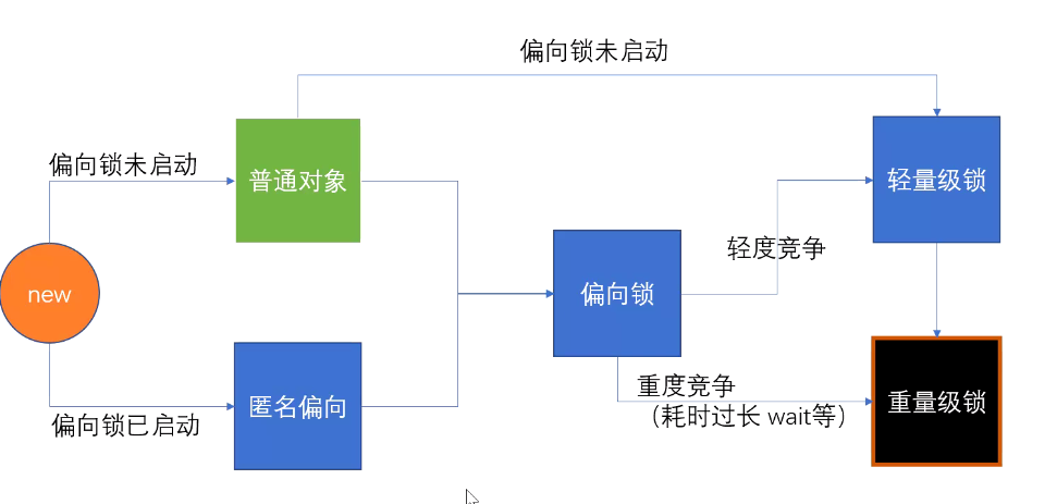 5.1 偏向锁->轻量级 只要有另一个竞争线程就升级
