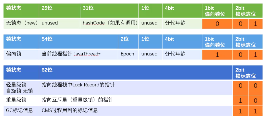 锁信息、hashcode、GC标记信息(回收)。