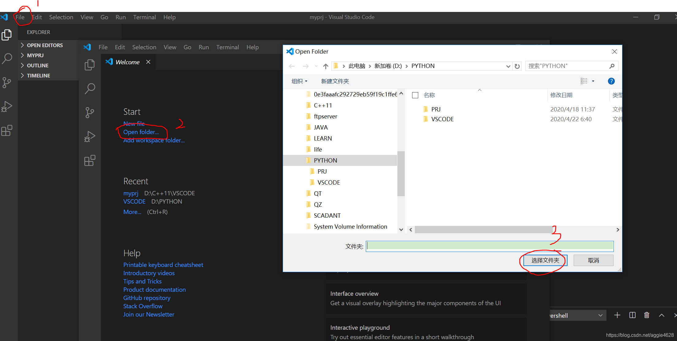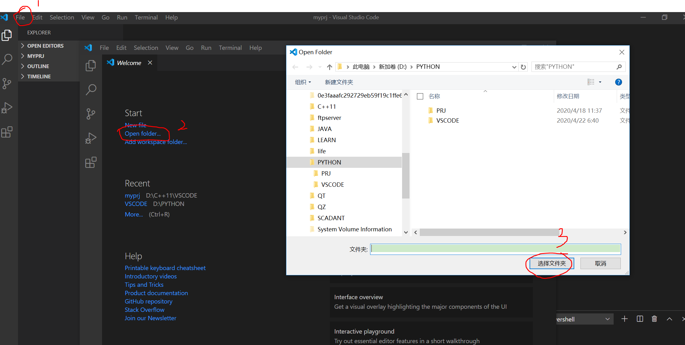 3.安装后->新建文件夹->选择文件夹,此处为你的项目安放路径