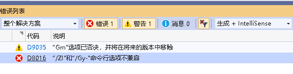 C++-问题(1)-解决“错误 D8016 “/ZI”和“/Gy-”命令行选项不兼容 ”-VS2019
