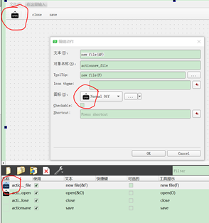 主窗口分5个部分,本文主要描述如何添加1、2,就是菜单栏和工具栏。其次就是为菜单或工具项添加图标。