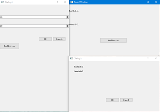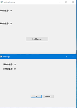 点击Dialog1上的pushButton后 MainWindow和Dialog2分别显示10 20