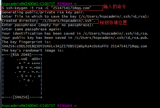2.1生成一个SSHkey 运行Git Bash, ssh -keygen -t rsa -C "your email@.com"