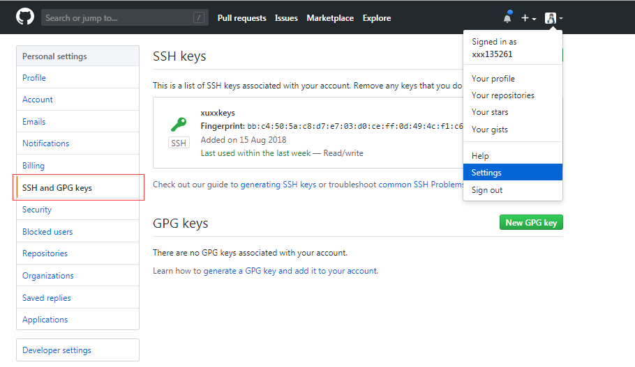 2.2登录你的Github账号,打开Setting 创建SSH keys