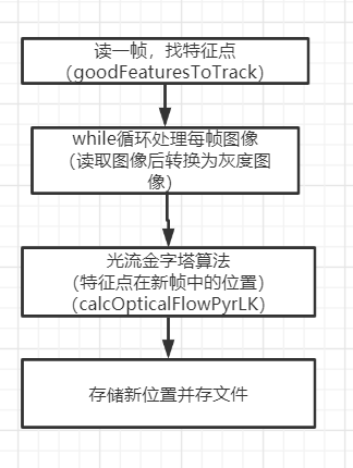 //第一帧图像,当前帧图像,特征点位置(前一帧中),新特征点位置