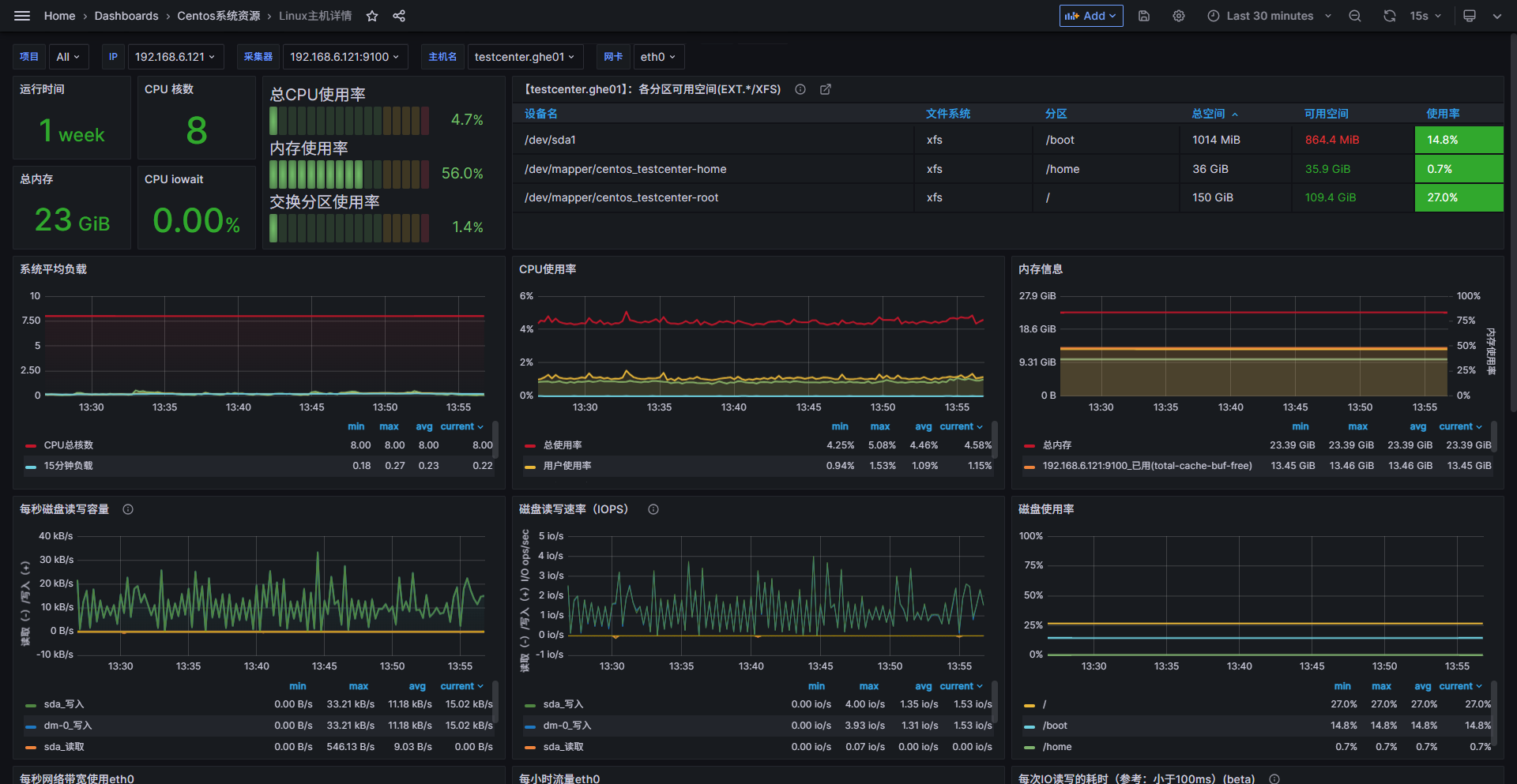 - 进入grafana输入模板序号:7362,获取面板如下:
