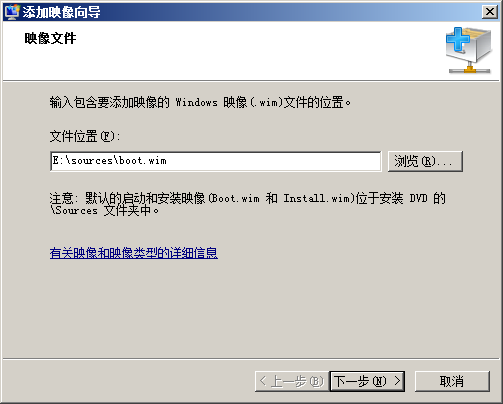 二、添加启动映像 本实验中,我们从win7安装光盘取得一个启动映像。