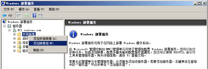 使用WDS捕获映像时,会将映像加载到WDS服务器的映像组中。在本实验中,我们事先创建一个映像组。