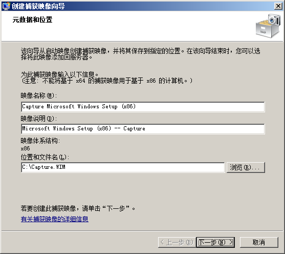 三、添加捕获映像 1、创建捕获映像 首先,利用上一步添加的启动映像制作一个捕获映像。以后将使用这个捕获映像在win7样机上进行捕获。