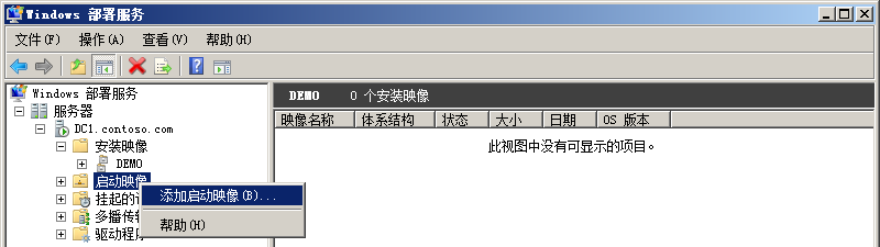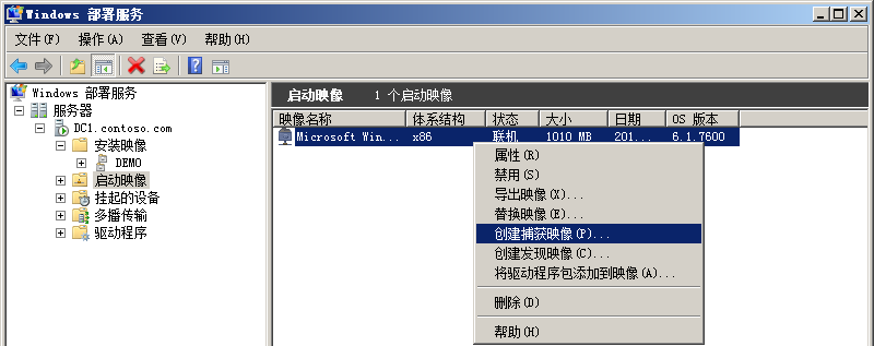 捕获完成之后,转到WDS服务器。可以看到,DEMO映像组中出现了一个新的映像。