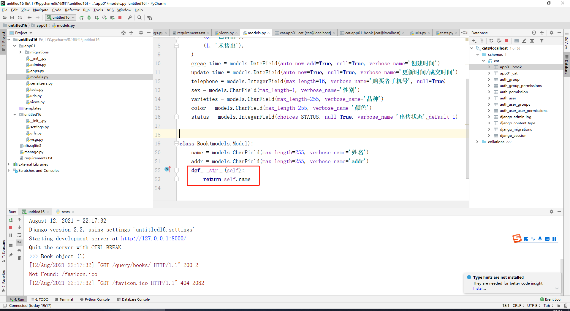 在一个模型下面定义一个__str__方法,然后return模型里的name字段,当我们打印这个类的对象的时候,显示name值