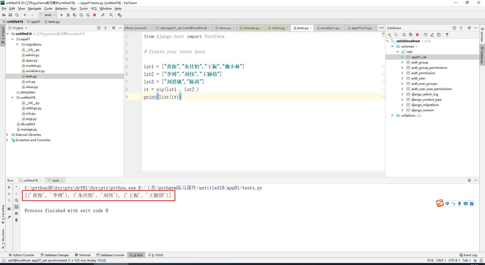 功能: 将多个iterable中的值,一个一个拿出来配对组成元组放入迭代器中