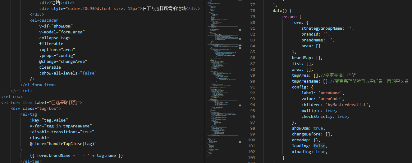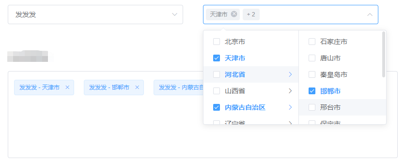 比较奇葩的级联需求,省、市父子关系分离,但是选择省,子集市选中的全部变为不选中,反之,选择一个市,对应的省立马变为取消勾选,组合框里的 X 进行取消时v-model 触发不了,采取v-if DOM 重构: