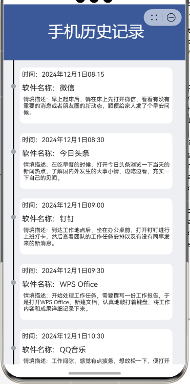 HarmonyOS NEXT 实战之元服务:静态案例效果---查看手机历史记录