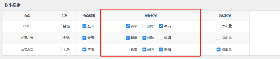 operationPermission: [{key:'新增',status:true},{key:'删除',status:false},{key:'编辑',status:true}],