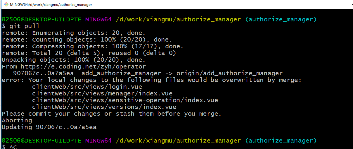 git 解决冲突 error:your local changes to the following files would to be overwritten