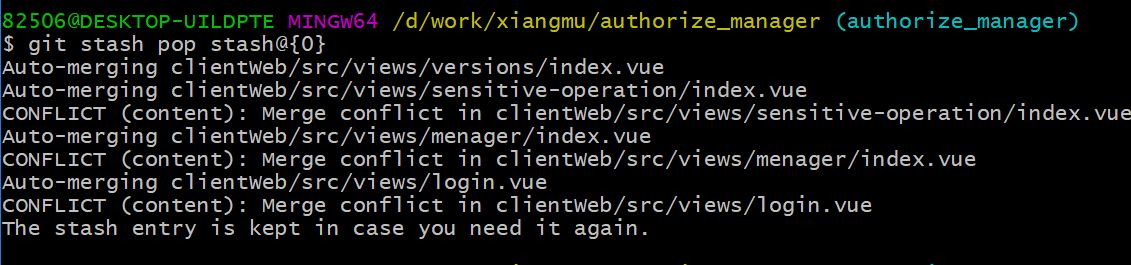 系统自动合并修改的内容,但是其中有冲突,需要解决其中的冲突
