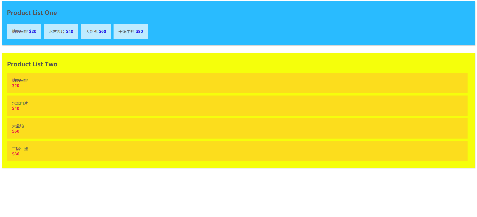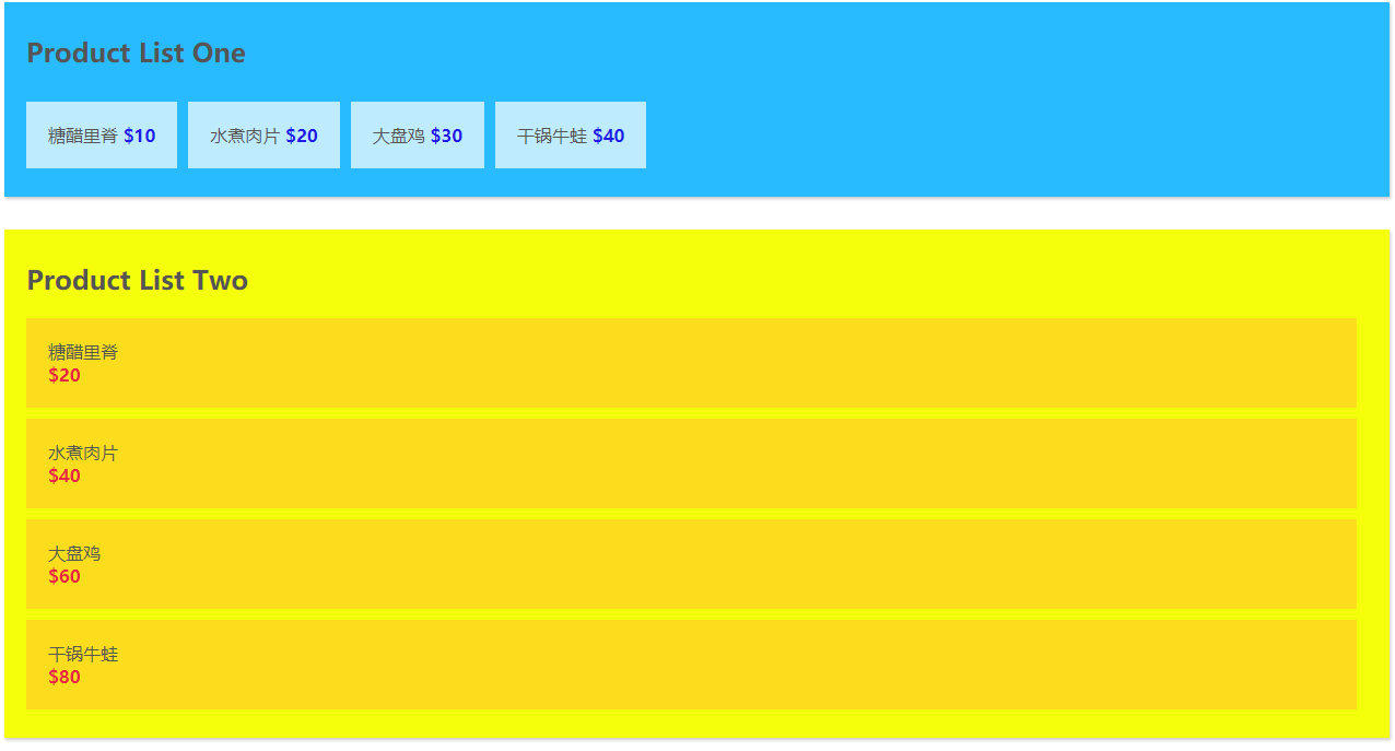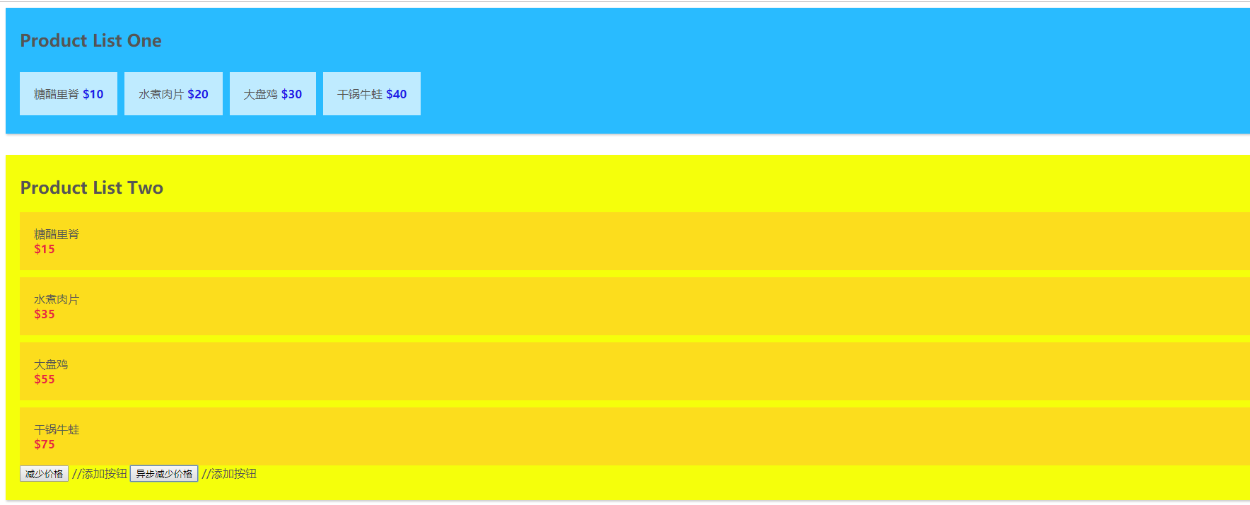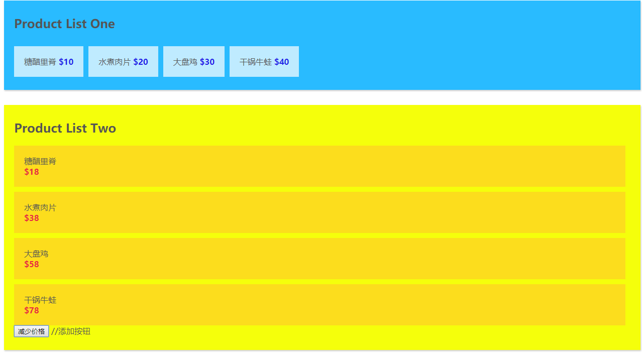点击按钮后可以发现, Product List Two中的价格减少了2,(一直点,一直减)