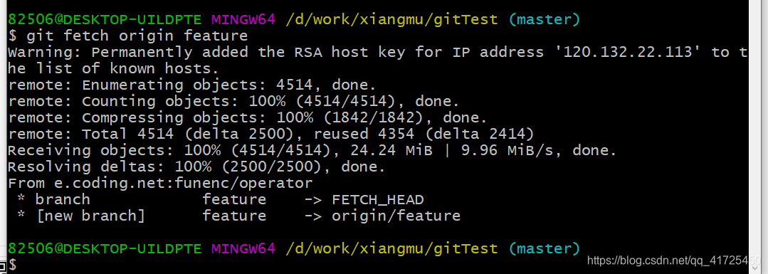 其中xxxx为分支名,根据自己情况更改分支名称即可,我拉取得远程分支为feature
