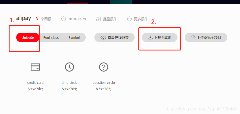 1.首先在阿里字体图标官网将需要使用的图标加入购物车,并按下图中的操作下载到本地